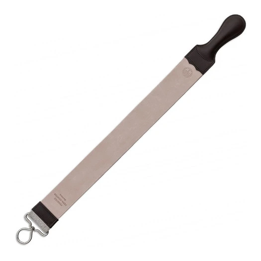 High-quality hanging strop made from genuine Russia leather with nickel-plated steel loop for hanging. The leather handle ensures a pleasant grip. Incl. linen back and authentic Boker stamp on front. Delivery includes leather care paste. Working surface: 5.0 x 40 cm.
