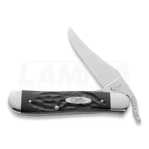 61953LSS pattern. 4 1/4″ closed linerlock. Stainless clip blade with extended tang. Black jigged synthetic handles with nickel silver bolsters and Case inlay shield.