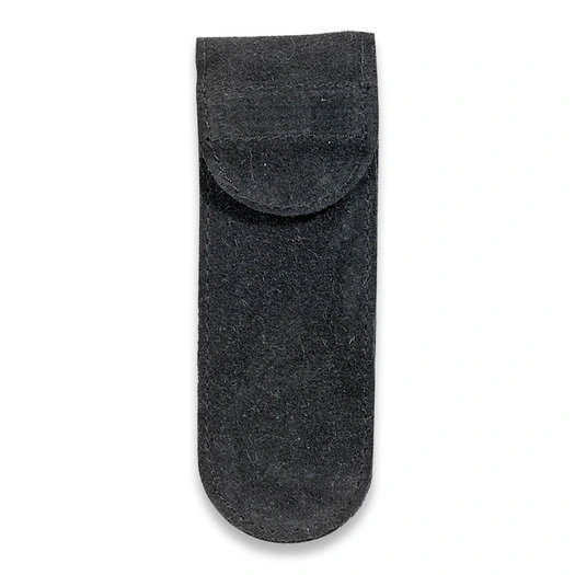 Black suede leather construction with fold over top. Measures 95 mm overall. 5 pack.